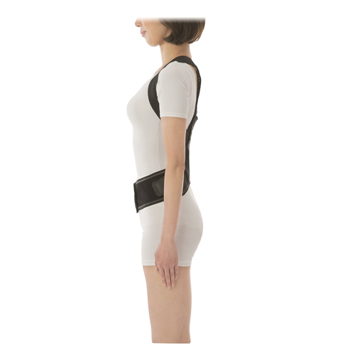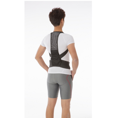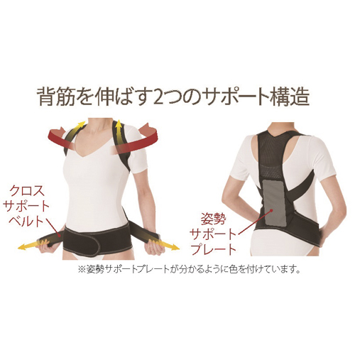 クロスサポートベルトで肩甲骨を引き寄せて胸を広げます。姿勢サポートプレートが背筋をしっかり支えて姿勢を正し、安定させます。男女兼用。