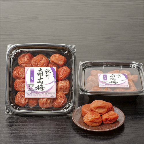 和歌山県で収穫された紀州南高梅をしそ風味で爽やかに漬け込みました。