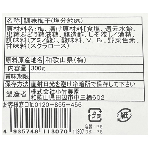 紀州南高梅しそ(塩分8%) 300g×2個入